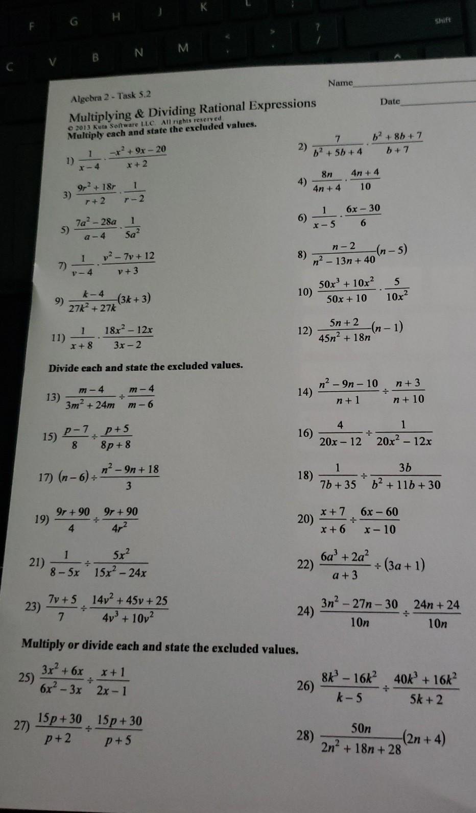 Multiplying And Dividing Rational Expressions Kuta Software